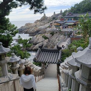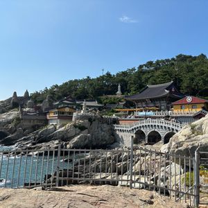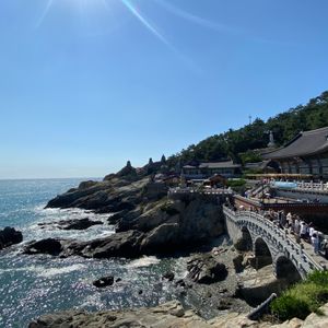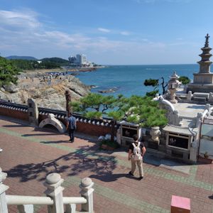 日本語がとてもお上手なガイドのリーさんとタクシーで回りました。こちらのお寺は、願い事が叶う海沿いの景色が素敵な歴史あるお寺として有名なので、クルーズ船からの外国人も大変多く、その中でも混まない所へ案内してもらい、韓国でのお作法を教えて頂き、眺めの良い所で写真もたくさん撮ってもらいました。