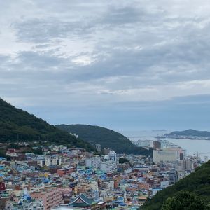 参加した日は、2組5名でのツアーでした。予定では17:30頃に解散予定との事、天気は曇り時々豪雨で、海雲台ブルーラインパークに着くと同時に土砂降りの雨「海雲台 海辺列車」乗車までの時間があったが臨機応変に早めの列車に乗れました。タリットル展望台は天候が悪いので入口を見てスカイカプセル乗場へ、海雲台ブルーラインパークに戻り近くのBUSAN X the SKY展望台から雲の上から海雲台の街並みと世界一高い場所にあるスタバを見て、昼食のナッチポックンを食べに国際市場へ移動、その後甘川文化村を散策してからヒンヨウル文化村にてコーヒーブレイクなのですがあまりの暑さでメニューをカキ氷に変更(もちろん予算オーバーは自費で)天気が良くなると暑く歩くのが大変でしたが、ガイドさんは丁寧で流暢な日本語で説明してくださいました。結局、南浦洞BIFF広場で16:30の解散するまで、おすすめの店も何店か教えていただき充実した1日を過ごせました。