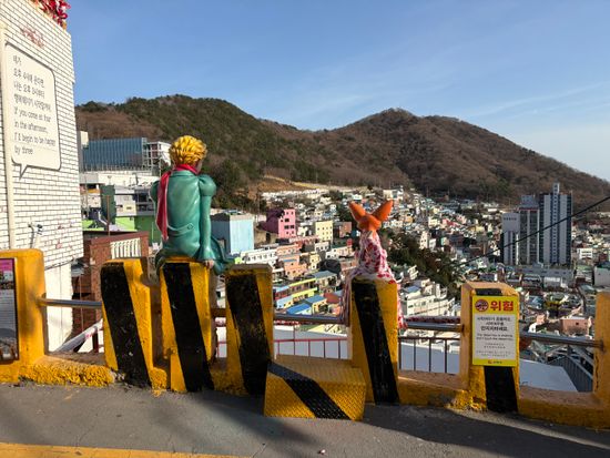 ガイドのユンボギョンさん流暢な日本語や楽しい会話良い良い スカイカプセル 甘川文化村ヒンヨウル文化村 特に村が出来た背景を知れて良かったです。甘川の星の王子さまには列が出来ていても正面に回って写真を撮ると良いと教えて頂きました。ガイドさんは色々と情報をお持ちなので旅の初めにこの参加をすれば良かったなぁと思いました。有意義な1日でした。ありがとうございます。又 教えて頂いたカニさんの店めちゃくちゃ良かったです。天気が曇り途中で雨 工事中などなどマイナスが多かったけど それをフルカバーして頂けました。