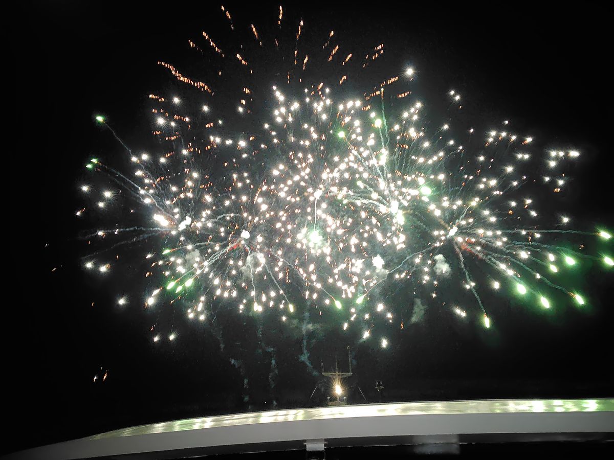 夜のクルーズ船の花火は5分くらいですが、甲板はかなり寒いので、防寒対策準備を!