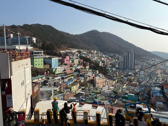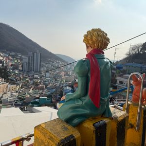 「甘川文化村」では星の王子さま像は大行列でしたが、私たちは並ばず、タイミングを見て写真を一枚。カラフルな街並みと丘の上からの眺めは、まるで童話の世界に迷い込んだようでした。