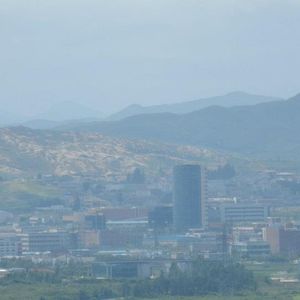 トラ展望台からはケソン工業団地が一望できます。双眼鏡を使うと、北朝鮮の国旗、さらには金日成像もみれます。