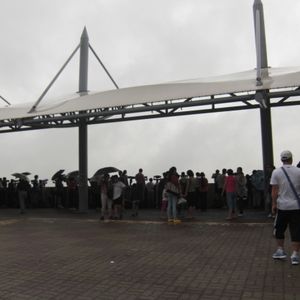 あいにく、天気が悪く雨が降っていたので、展望台で双眼鏡で見ても、あちら側の様子は見えませんでした。