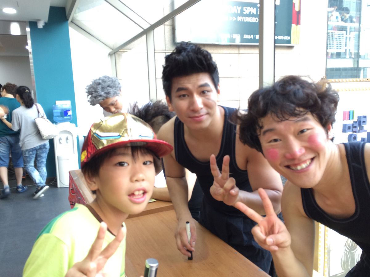 8歳の娘と見に行きました。金曜日の20時からの公演でしたがほぼ満席でした。思っていた以上に面白く娘もずっと笑っていました。休憩無しの1時間20分でしたが飽きることなくあっという間でした。公演後、3000ウォンでサイン板(笑)を買うと出演者全員からサインをしてもらえそれにも娘は感動していました。