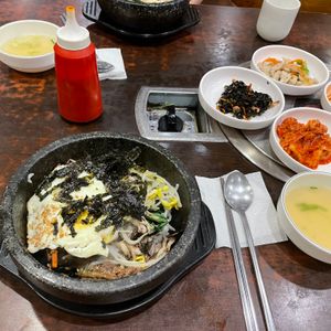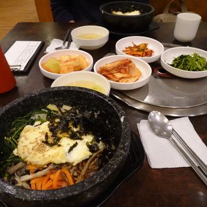 民族博物館を見学した後は お待ちかねの 石焼きビビンバの昼食 おかずも