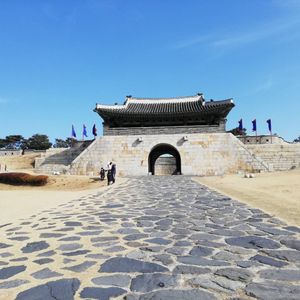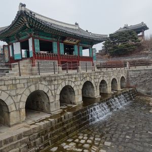 仲の良い友人との二人旅でした。どんよりした天気の中の水原華城、城壁が素晴らしく歴史に思いを寄せました。次いで嵐のような風、雪の舞う中のチャンドックンの見学。ガイドさんの「こんな日は初めてかっに思わず笑ってしまいましたが、世界遺産は素晴らしかったです。チマチョゴリはちょっと恥ずかしかっかのですが、結果満喫してしまいました。ガイドさんも親切で、昼食も美味でした。