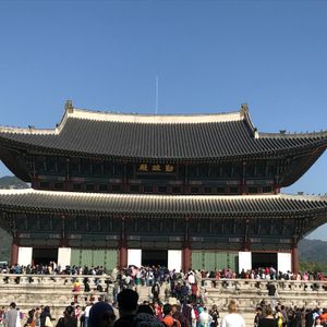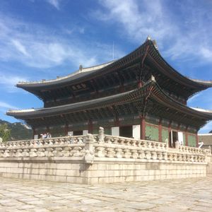 今回は小型バス満杯でしたが バスの中、現地でも声が聞こえず困りました。イヤホン付きのガイドツアーにして欲しいです。景福宮が広く 色々な説明をして下さっているのに とても残念でした。また坂道が多く、景福宮では石畳を約1時間歩くので 足が悪い方は無理です。最後の市場では きちんと座れる店はなく、屋台がメインなので韓国初心者には臭いも見た目もハードルが高く感じました。