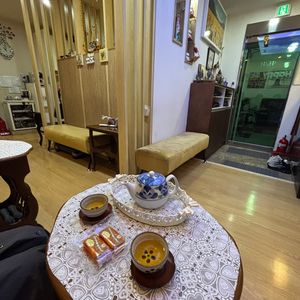 韓国の伝統的なお菓子やコーン茶?や、施術後にヤクルトを出してくれたり、パックシートもプレゼントしてもらって至れり尽くせりでした。