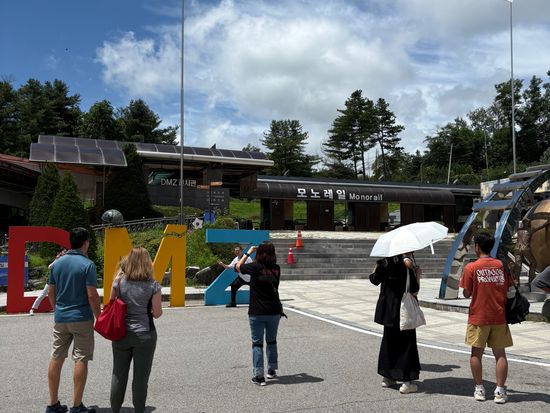 ガイドしてくれた李美英さん(イミヨンさん)から色々教えてもらい、とても考えさせられました。「愛の不時着」のラストで北朝鮮に帰る自動車道のゲートも間近に見られます。