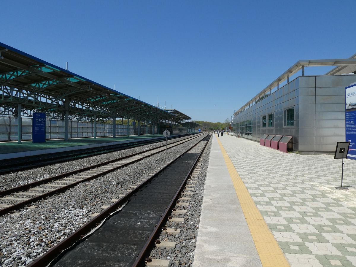 また、南北統一後に賑わうであろう都羅山駅の現在の風景を乗車券を購入して駅ホームまで行き見てください。