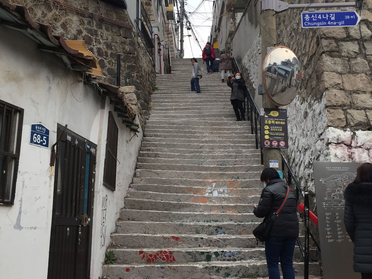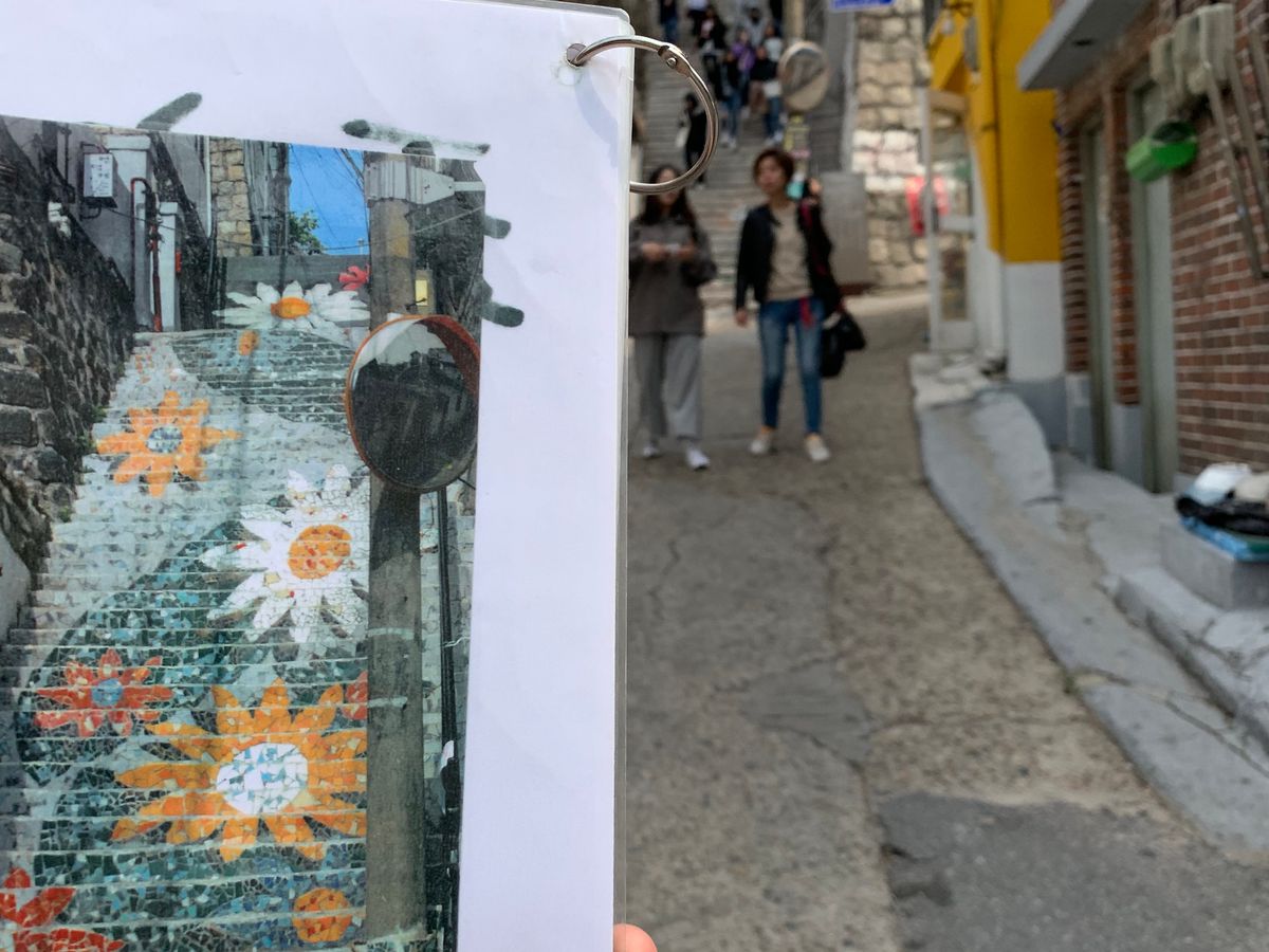 駆け足での見学でしたが、北村の伝統家屋が見られたり、壁画村のアートも良かったですが、すごい坂道を昇った後に見られるソウルの街並みは感動しました。