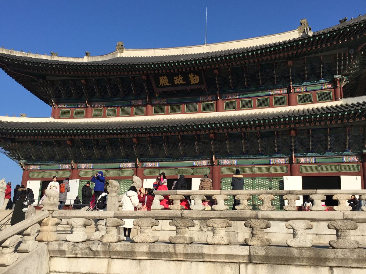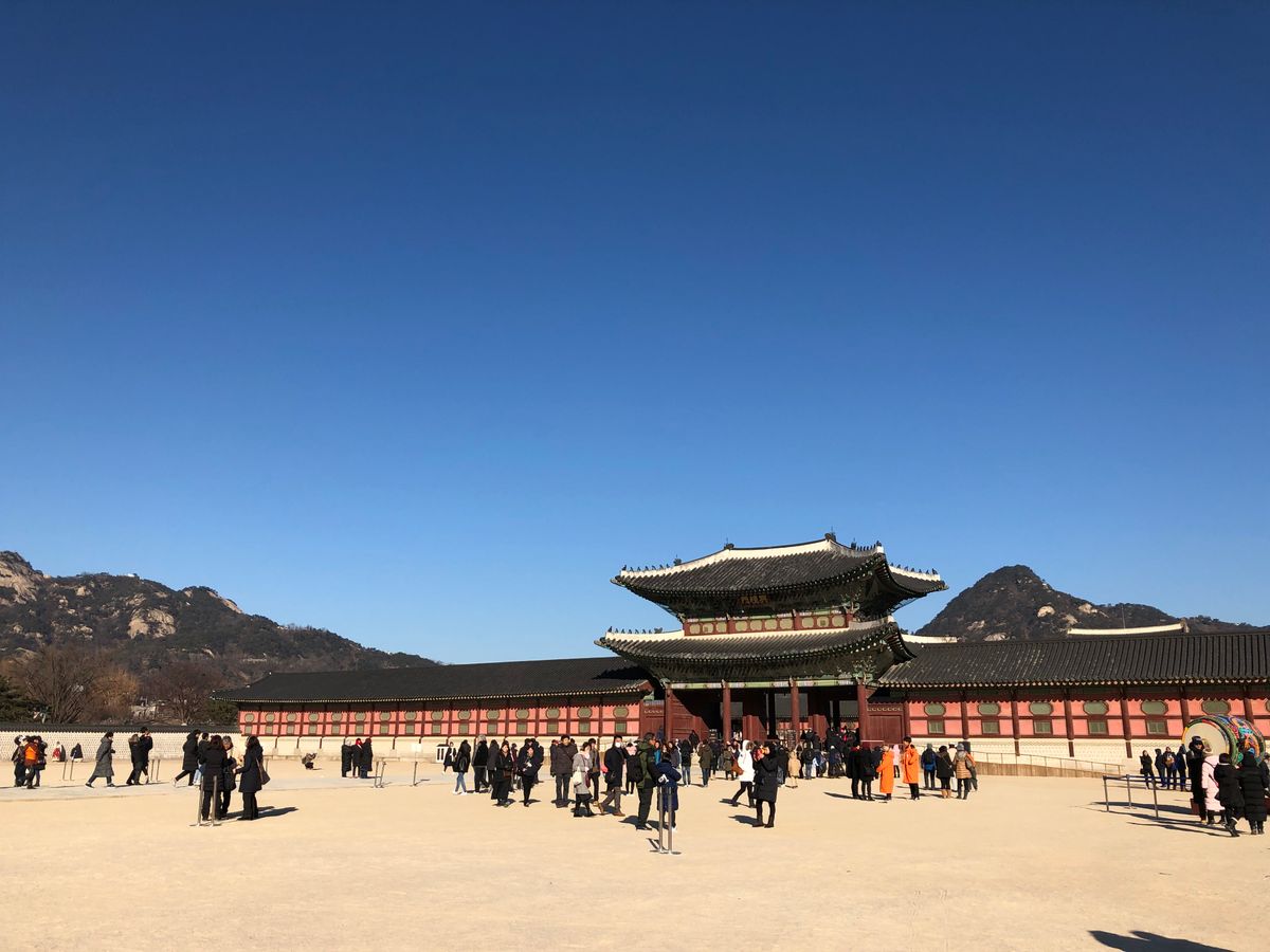 すむんじゃんは、現地の案内人がついて見学します。日本語での案内は、9時です。まだ本当に寒い時間帯でした。でも韓国の女の人が、丁寧に優しく説明して案内してくれたので寒さも忘れました。景福宮きょんぼっくんは、迎えに来てくれた方が案内してくれました。楽しくいっしょにまわり、写真もたくさん写してくれてよかったです。写真の良い場所も教えてくれました。いい記念写真がいっぱいとれました。