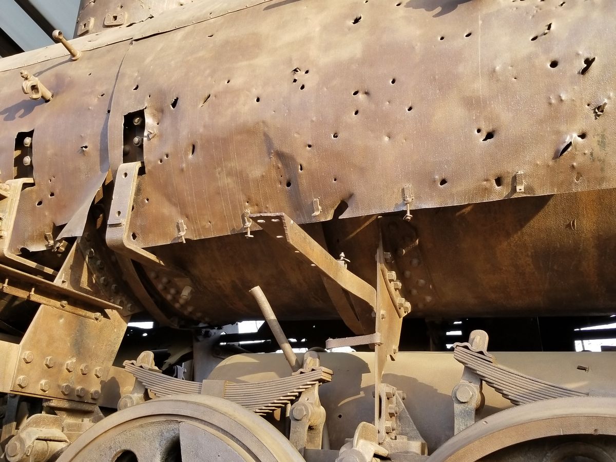 機関車は銃撃戦の激しを物語ります。