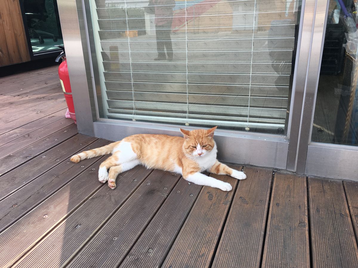 6歳の子供は終盤少し疲れ、飽きてきていましたが、カフェの猫をなでられて満足していました。