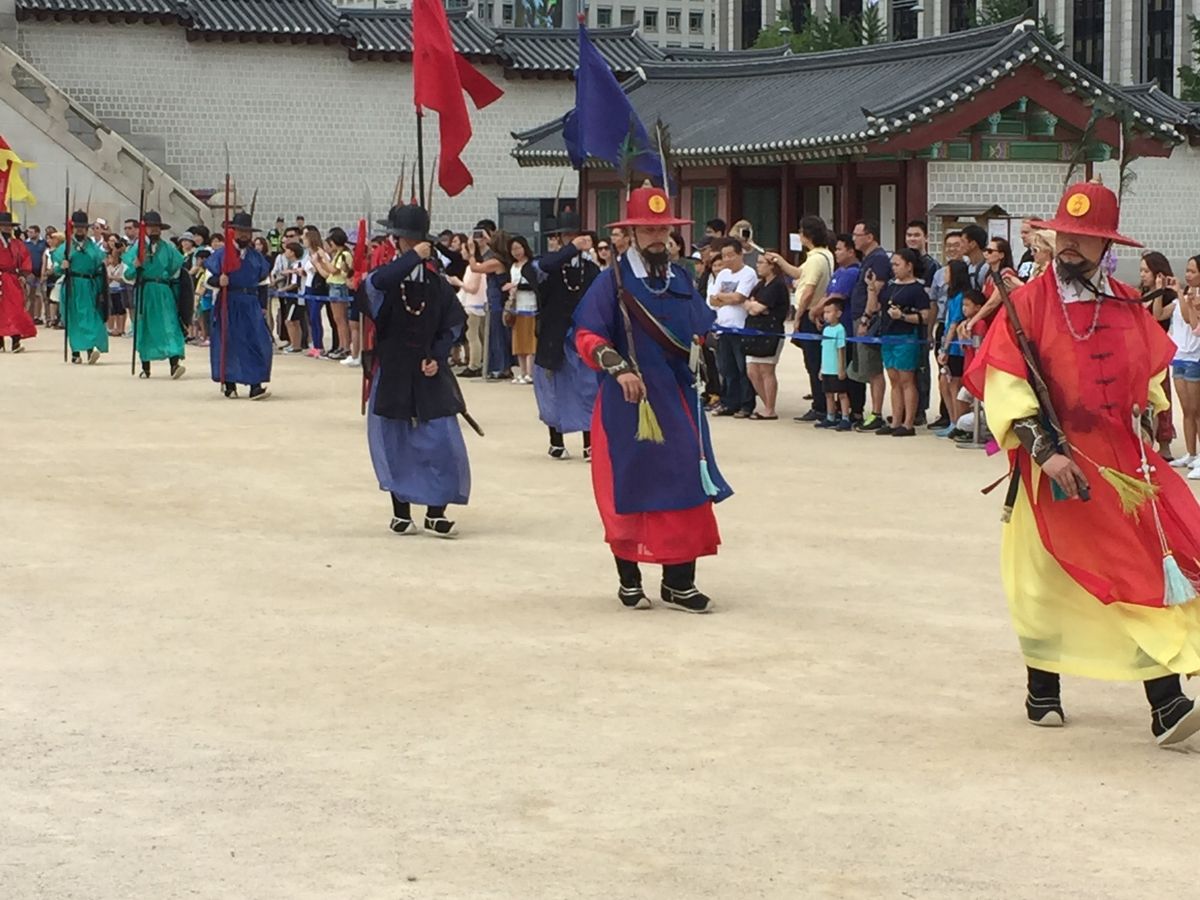 景福宮での交代式の直後は、突然「行きますよ~」とダッシュされて、訳がわからず一緒に走ったのですが(笑)、式に出ていた式典衣装の方と一緒に撮影ができるポイントに走ってくれて、おかげで並ばすに撮影してもらうことができました。説明もわかりやすく、親切でガイドさんには大満足でした。