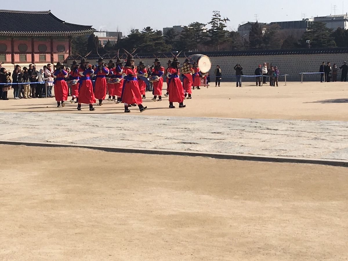 名でした。以前から見たかった、衛兵交代式など歴史探訪ができ、また昼食については当初昼食は石焼ヒビンバでしたが非常に寒い日だったので仁寺洞で地元人達の行くホルモン鍋屋に案内をして頂けました(当然追加の料金は発生します。)午後はソウル市内が展望できロケ地だった山へ登り、北村はこと細かく説明を頂き、個人で行ったならば、ただ古い家並み程度でしょう。