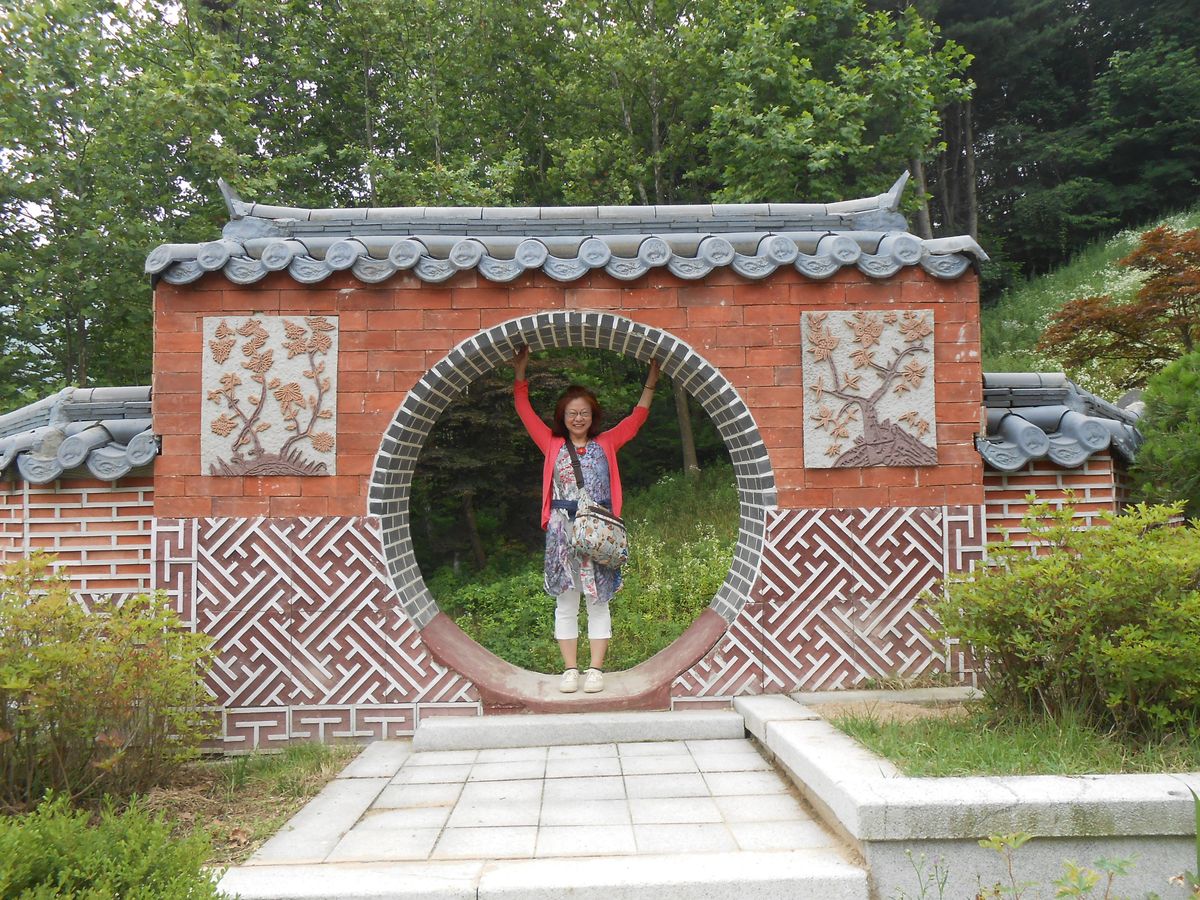 前から行ってみたいと思っていた私にとっての聖地「大長今パーク」に、三度目の韓国でやっと行くことが出来ました。当日の予報は雨でしたが曇りになり、ちょうど良いお天気になりました。ソウルからのバスの中ではウトウトしていたのに、入口でお出迎えしてくれるトンイやイサン・ミシルの壁画に気分が一気に盛り上がります!思わず「来たよ~」と手を振りました(笑)。撮影は行われていず、ちょっと残念な事でしたが、それよりもガイドのキムさんがドラマのシーンを思い出せるように説明してくださって、そしてエピソードを交えての説明が素晴らしくて、本当に楽しかったです。山歩きが全然苦になりませんでした。ガイドの説明なく見て回るのも良いかと思いますが、やはりシーンの説明やエピソードをお話してくださるからこそ、今にも「チョナー」なんて言う声が聞こえてきそうな感じで、大好きな時代劇ドラマの世界に存分に浸って来ました。そして制作に関わる人たちの苦労をちょっぴり共有できたような気持ちにもなり、それは幸せな気分です。今回は衣装のレンタルで室内で写真撮影を楽しみましたが、外を歩くときも衣装を着て歩くことが出来たら良いなぁと思いました。