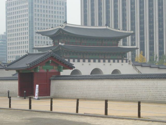 市内観光のスタートは生憎の雨で景福宮の衛兵の交代式は見ることができませんでしたが宮殿に入ると外とは何か違う気のようなものを感じました。さすがに王の住む空間であるだけに吉祥の地を選んだからでしょうか。石畳もしっとりと濡れてそれはそれで趣きもありました。日曜日でしたので他の観光客もたくさんいましたが、雨を避けながらスムーズに案内していただけてガイドさんに感謝いたします。国立民俗博物館では朝鮮民族の歴史伝統生活習慣などガイドさん自身の子どものころの体験などもまじえて本当に興味を引く内容でもっと時間が欲しいと思いました。館内はフラッシュをたかなければ写真もOKで良心的だと思います。私たちの質問に親切に答えていただいていたせいか次の宋廟の日本語ガイドグループの時間に遅れそうで少し走りましたが、何とか間に合いました。宋廟はとても神聖な場所で入場者が制限されているようで私たち日本語のグループは全部で30人ほどだったでしょうか、他には廟内には誰もいませんでしたのでひっそりと本当にしずかなところでした。石畳の道を歩いていくと宋廟専属のガイドさんは石畳から降りるように注意されました。なぜならそこは歴代の王の霊が通る道だから決して歩かないで欲しいということでした。朝鮮王朝の魂が生きているのだと実感しました。昼食のあと1日市内観光ツアーは私たち2人だけで、昌徳宮から北村、三清閣展望台(?)のとちゅうは観光ガイドプラスお互いの子どもや仕事の話もできて、特に韓国のお受験の話などはとても興味深く聞かせていただきました。