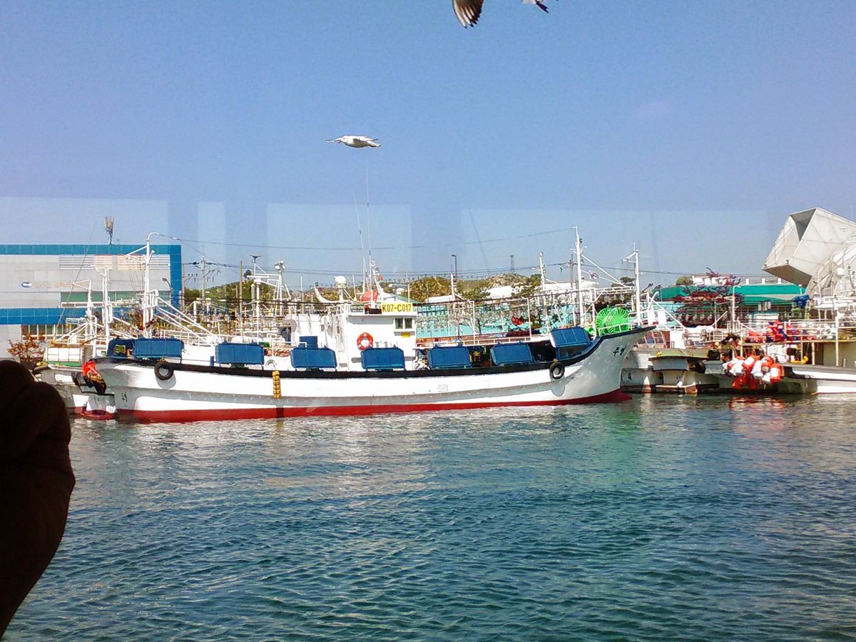 釜山から2時間程でまず最初の目的地補項運河に。遊覧船で世界一の規模を持つ鉄工所を見学です。途中カモメに餌をやることができましたが、我々は餌となるかっぱえびせんを持ってなかったのでできませんでした。どこかで買えるのか持っていった方がいいかは不明です。