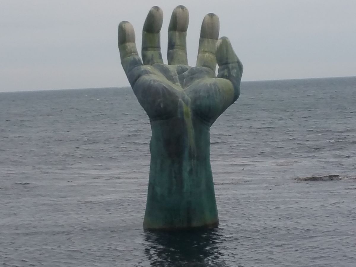 昼ご飯にムルフェの店に行き、いよいよ虎尾串日の出広場です。海の中に片手、公園の中に片手、のモニュメントがあります。海の中のほうは韓国で一番最初に観られる日の出を掴むように造られてるんだとか?陸のほうはわかりませんでした。どちらも日本語の説明はありませんでした。