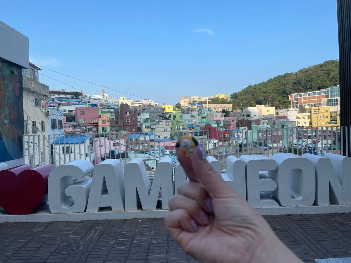 JIMINパパのカフェ、五六島、海東龍宮寺、ロッテ免税店、甘川文化村を周りました。