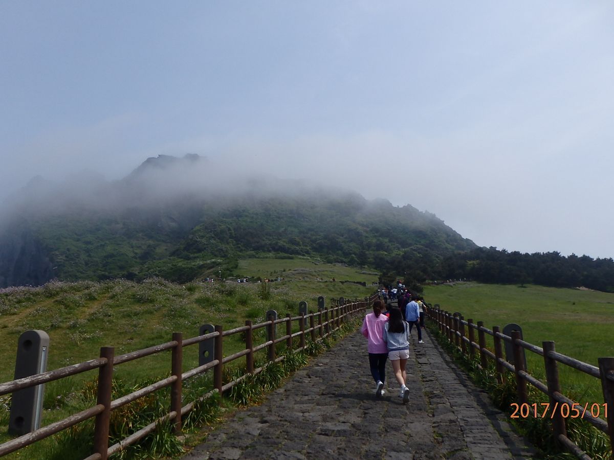まず世界遺産の万丈窟へ。4月の24日だったのですが4月いっぱいはチェジュの観光施設は入場料が無料という事で得した気分になりました。続いてガイドさんおススメの乗馬を経験した後に城山日出峰へ、そこはガイドさんも言ってましたが中国人がほとんどいないので静かでしたが本土からの中学・高校生がたくさん来ていました。