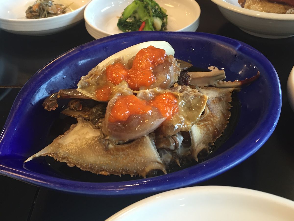 とりわけ暑かった釜山。バンさんは常にクーラーを効かせて待ってくれたのです。ありがとうバンさん。彼は、最後にカニの料理、私たちが食べたかったカンジャンケジャンの店を紹介してくれました。ヘウンデです。黄色の卵が甘くて素晴らしい。このタレは日本にはない。大満足の1日ツアーでした。