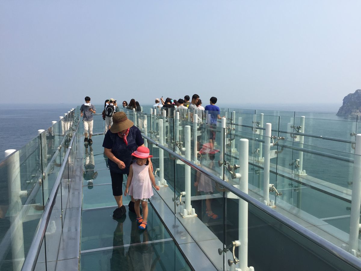 五六島のスカイウォークは、ガラスの上を歩きます。下は断崖と海。ソロリソロリ。スリリングですが、慣れてくると、病みつきに。楽しい体験でした。そして龍宮寺。海に面したお寺は、かなり珍しい。龍の絵や、彫刻がたくさんある異次元体験。APECハウスは、盧武鉉大統領、小泉首相、ブッシュ大統領らが会議をした場所。海か綺麗な場所でした。