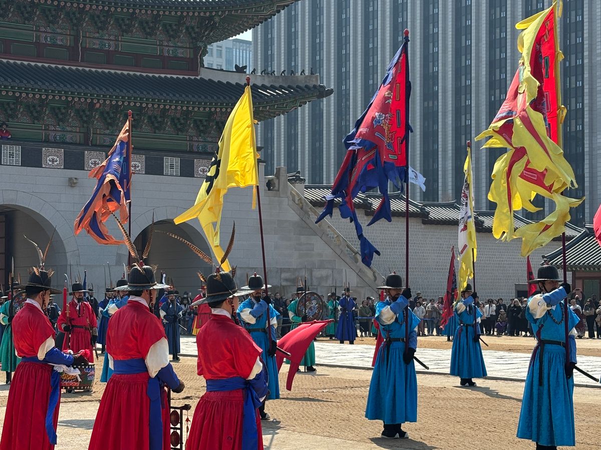 景福宮観光では青瓦台方向からの入場で案内され入口付近での守門将交代式も時間内に見ることも出来ました。11人での団体観光でしたが13人乗り?のマイクロバスも快適に移動出来ドライバーの運転も割と丁寧にして頂き安心でした。団体観光ならオススメのコースです、お世話になりました。
