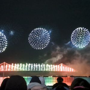 本当は星1も付けたくなかった。花火は綺麗だったけど、ツアーの添乗員さんに帰り道に、トイレに行って来て良いと言われたから行ったのに、集合場所に戻ったら置いてきぼりになった。仕方なく地下鉄の満員電車で帰った。帰りの集合場所での人数確認なども名簿は使わずずさんだった。ソウル梨泰院の事故の経験から、花火が終了しても、会場出口を封鎖しその影響でなかなか外に出られなかった。大会では物凄い人で地下鉄も混むだろうから、高いお金を払ってツアーに参加したのに!帰りのバス乗り場の地図位、印刷または添乗員と連絡が取れるLINEのQRコード位用意すべき!韓国が嫌いになった!