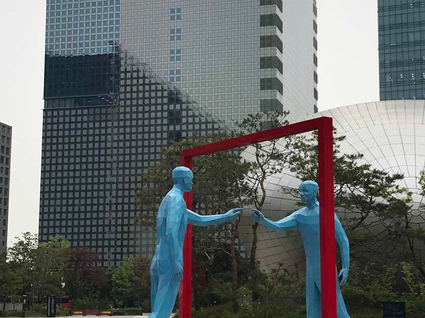 ガイドさんもとても気さくな方で、一緒に感動を分かち合うことができました。この日は、一山でお祭りがあったため、その後の予定が少し変更され、デジタルメディアシティにあるMBC本社前広場へ。