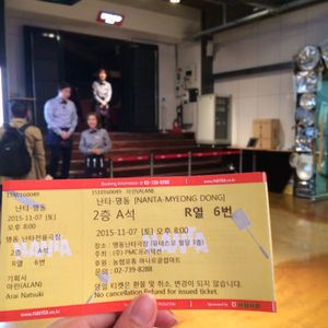 日本でチケットを予約しましたが、当日劇場に行くまで不安でした。明洞劇場へ集合時間30分前に着きましたが、発券して頂きました。結構前の席でした。