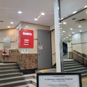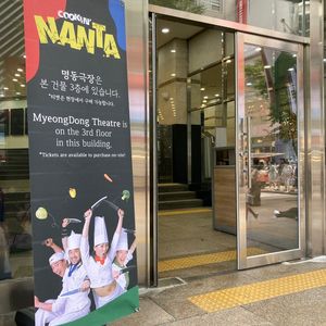 NANTAは2度目ですが、前回は会場が明洞に移転する随分以前のこと。ホテルから10分も必要ない距離。と思いつつ、念の為、1時間前に出発しましたが、紙媒体の地図も、スマホのマップも、近所まで来ていると思われるのに劇場がわかりません。3度ほどぐるぐると回ってみましたがわからないので、化粧品販売をしていた店員さんに尋ねると、目の前の建物だから右に行けと教えてくれました。右折し右折し、また、同じ道に出て、結局先程の店員さんが入り口まで連れて行ってくれ、なんとか目的地に到着したのは1時間経っていました。ホテルで私の迎えを待っていた同行者も、自分で来てもらうことになり、会場前で待ち合わせ。結局、販売員さんに連れられて会場前へなんとか到着しました。建物の外観や外側からではわかりづらいと思います。近くまで来たら、中を確認しながらお探しあれ!!