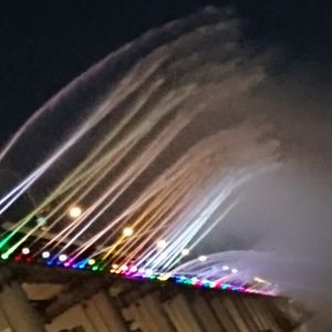 骨付きカルビの夕食は、美味しかったです。もう少し時間があればいいのかなとも思います。が、噴水ショーが行われる橋に向かう途中、バスが渋滞に巻き込まれてしましい、短い時間でしたが噴水ショーも見ることができました。イルミネーションがレインボーだったりするのかなと思いましたが、ちょっと期待外れ…。