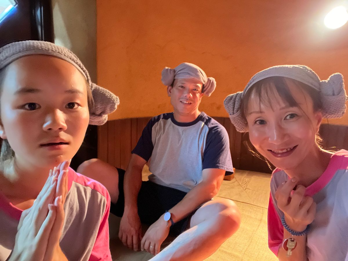 初めて汗蒸幕に入りました。長い時間は入れませんが2、3回に分けて入りたかったです。旅行中、お風呂に入れるのはとても嬉しいです。