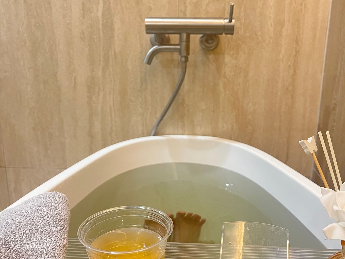まずガウンを脱いでお風呂入ってくださいと言われ、メイクを落としお茶を飲みながら15分くらい入浴。