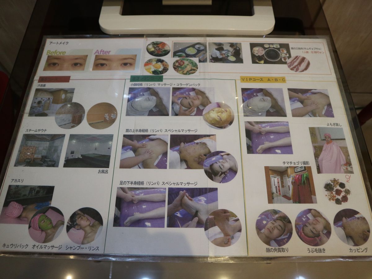 あかすりは確かに気持ち良いが、間、間の説明がなく不安でした。写真のように綺麗ではなくビルの間をあちらこちらまわされるし、のどが渇くのはわかりきっているのに水は買わされる。最初に細かく説明して欲しい。しかもドライヤーもお金がいる。こんなことは何回も韓国では利用しているがこんな経験は初めてでした。