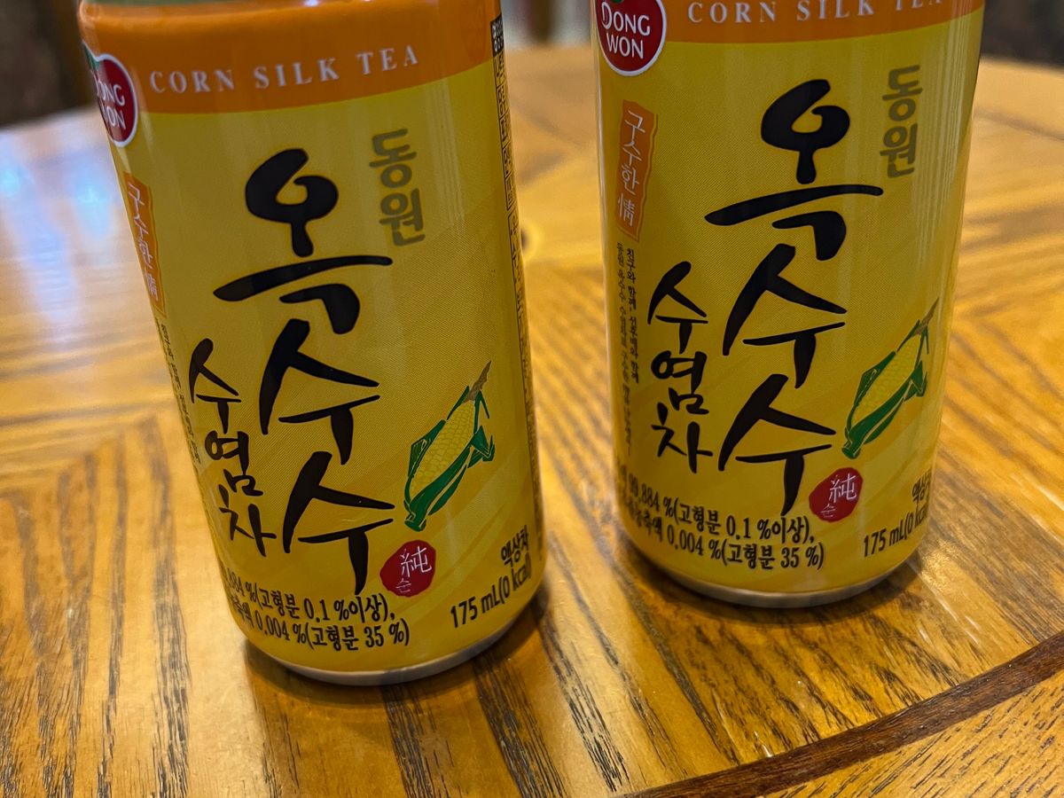 ⑨最後に缶のコーン茶を飲んで終了です