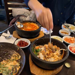 石焼きビビンバは香ばしく、スンドゥブはぐつぐつ迫力満点、食べきれなかったチヂミは持ち帰り、大満足です。