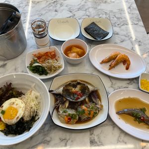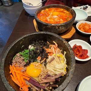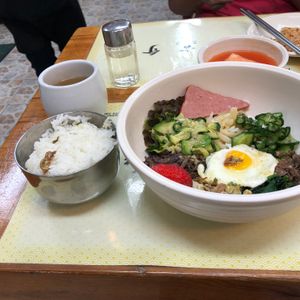 ビビンバ(卵焼き付き)やキムチ類、スープもセットに含まれていて、金額的にもお得でした!複数の定員さんが日本語を話せるので、安心です!