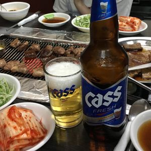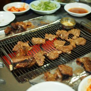 夕食で予約しましたが、カルビを頼もうとしたらことごとく売り切れでした。辛いと言われたカルビはありそれをお願いしました。みんな辛いものは平気な人ばかりだったので、それほど辛いとは感じませんでした。空港からホテルへ向かう送迎のプランと組み合わせたので、ドライバーさんが注文を手伝ってくれたので助かりました。3人で行きましたが、2Fの個室の座敷のようなところで、日本語が少しわかるお店の方が担当についてくれました。1Fのテーブル席は地元の方達がいらっしゃいました。カルビチムが有名とのことで頼みましたが、やはり漢方の味がするので好みが分かれるところだと思います。