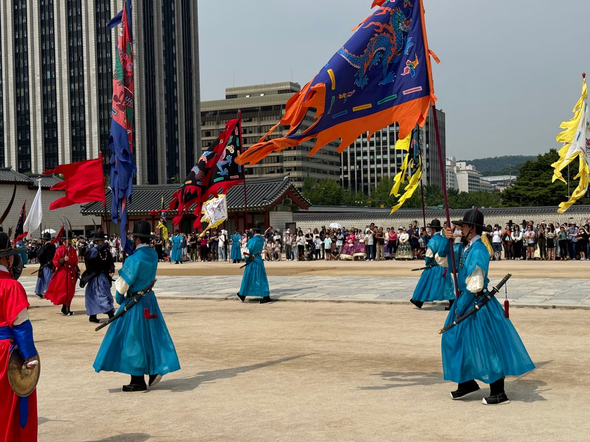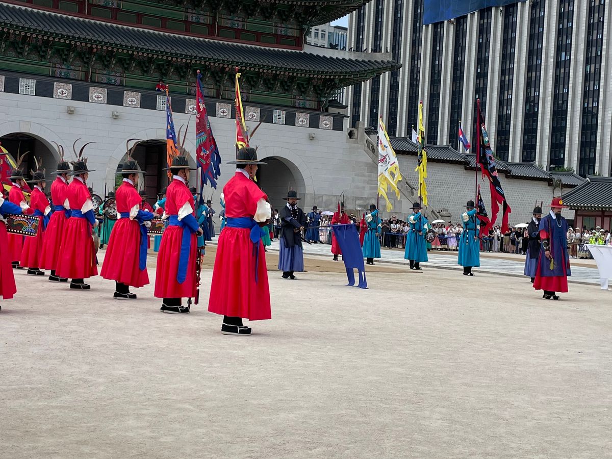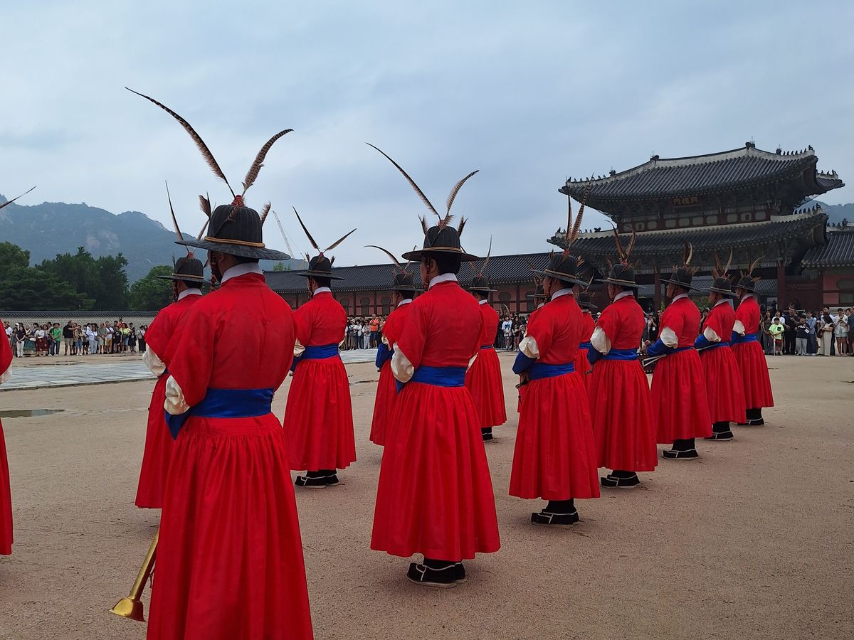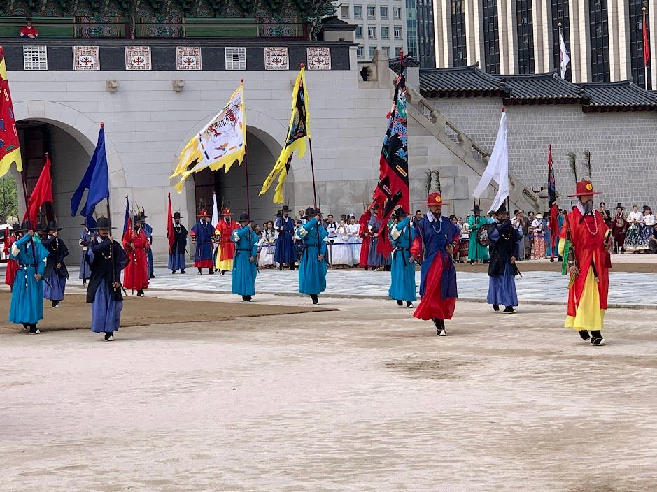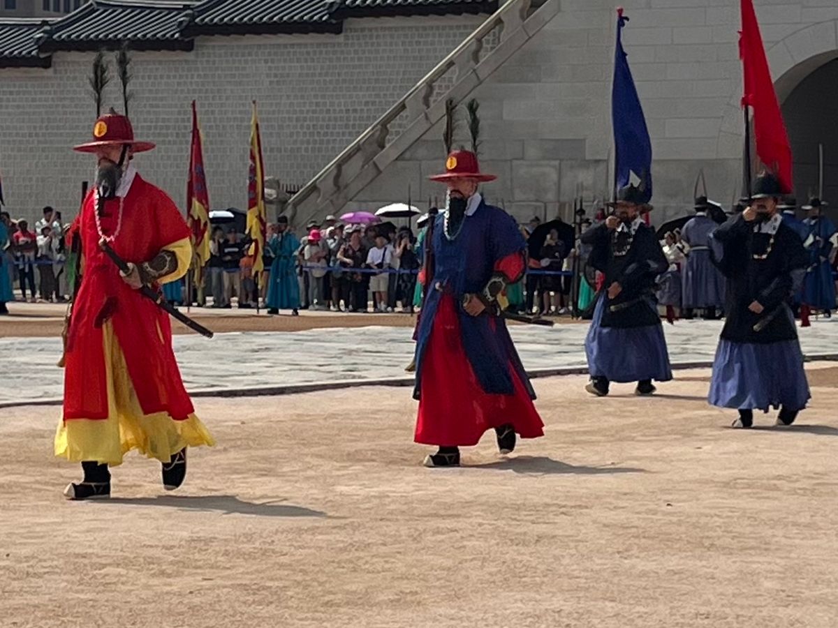 再度交代式を実施するとアナウンスあり。太鼓の音と同時に開催され、韓国らしい民族衣装と式を真正面から15分程度見ることができ非常に良かった。