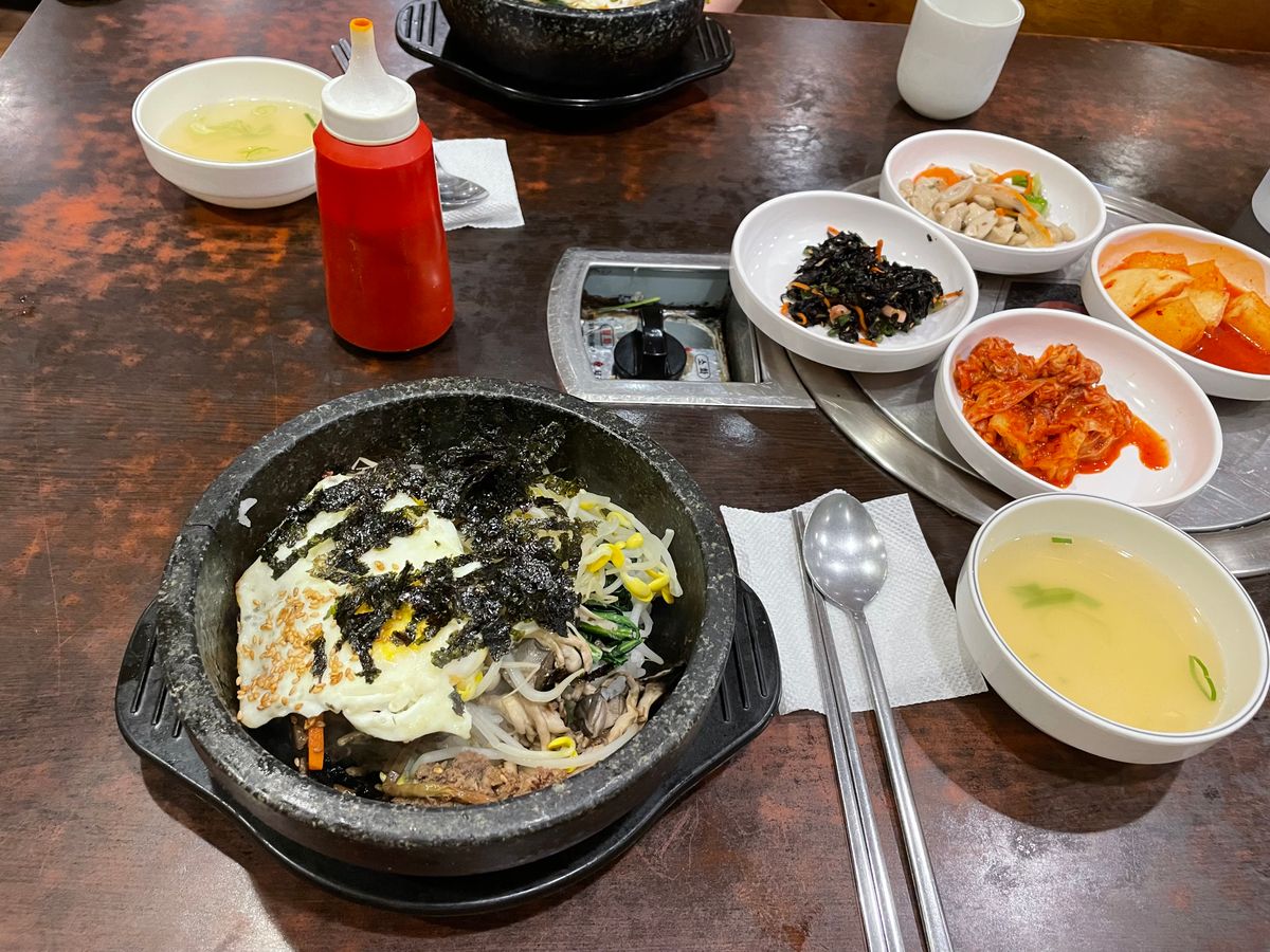 民族博物館を見学した後は お待ちかねの 石焼きビビンバの昼食 おかずも