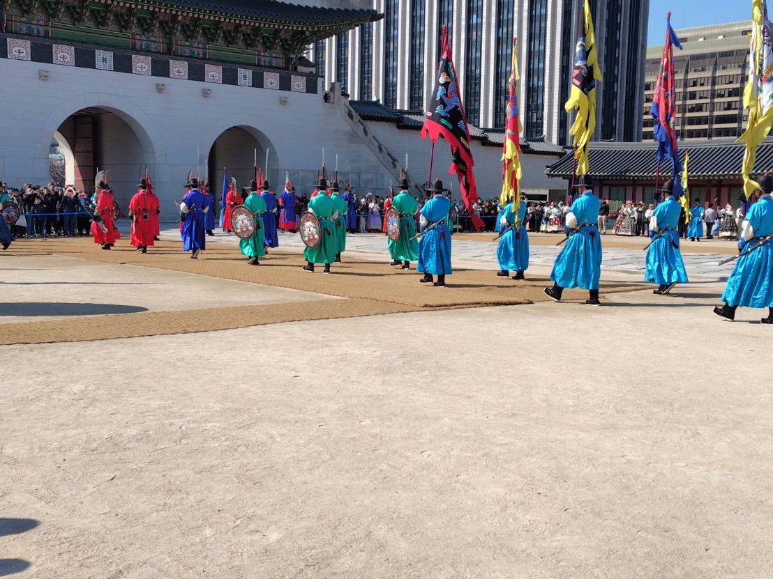 景福宮+景徳宮(曜日の都合上後苑入場無し)のプランでしたが造りは似ているところも多く、後苑入場無しであれば、時間や体力などに制限がある場合、景福宮だけでもいいかもしれません。景福宮で見た守門将交代式は15分ほどでしたが圧巻でした。朝方少し雨模様で、雨のときは中止になるようでしたが、運よく晴れてきて楽しむことができました。