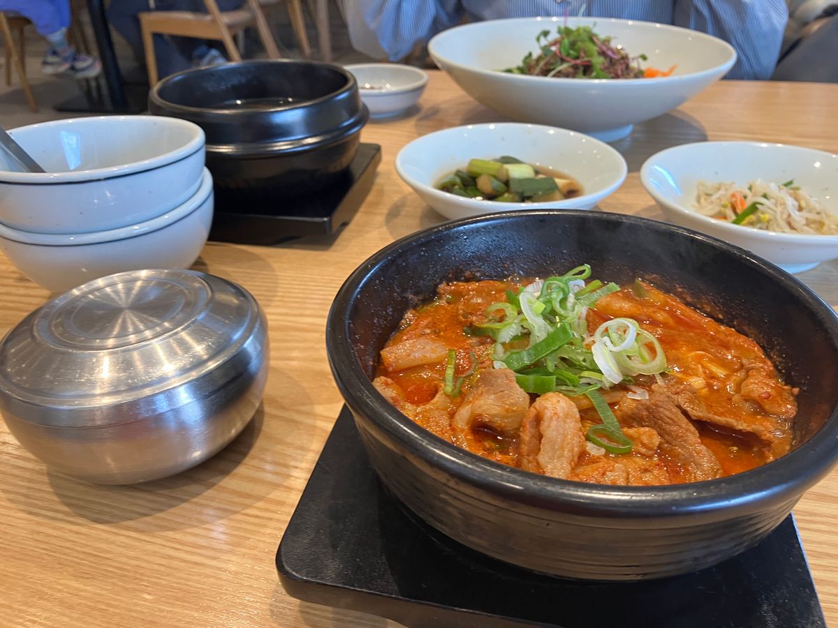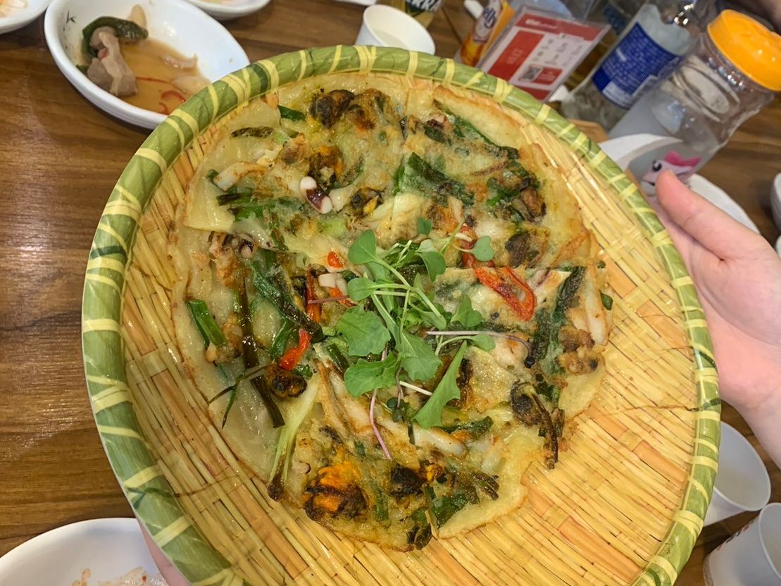 また、お昼は、お店は予約してくださっていたので、待ち時間もなくすぐ食事ができました。メニューはネギチジミとプルコギ。もっちもちのネギチジミと野菜たっぷりにのプルコギの愛称は最高です。