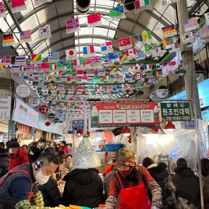 集合場所はロッテホテルソウル明洞・本館2階のツアーラウンジ。この場所にはこのツアーのことは何も表示されていなかったのですが、JTBの店舗があったので、ここだと確信して長椅子に座って待機。15分前に到着しましたがすぐにガイドさんが来て合流。予定時刻からツアーが始まりました。ガイドさんは韓国の方でしたが日本語ペラペラのベテランガイドさん。下調べもばっちりのようで、全てが予定通りに進んだ感じです。景福宮、守門将交代式では歴史を感じ、北村では聖地巡礼、カフェの多い人気の仁寺洞では撮影現場と遭遇、丁度お昼時の広蔵市場ではこれぞ韓国って感じの熱っ気ムンムンの中でチジミ、ユッケなどなどを食しました。ここでツアーは終了。帰りは東大門経由で地下鉄4号線に乗って明洞のホテルへ。程よいトイレ休憩や自由時間があってそんなに疲れなかったですが、1.8万歩ほど歩いていました。大満喫のツアーでした。(韓国の人は歩くスピードが早かった)