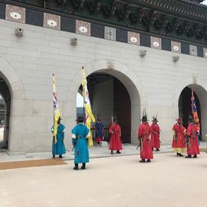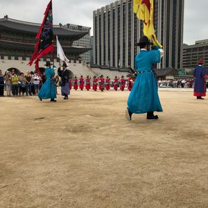 チマチョゴリを着るのは初めてでとてもワクワクしてお店に行くと上も下もたくさんの種類のチマチョゴリがあってどれも可愛すぎて選べない!と言う感じでした。チマチョゴリを着て隣にあるキョンボックンへ交代式を見に行きました。ガイドのイさんが、1つ1つとても丁寧に説明してくださり韓国の歴史や文化を知ることができてとても良い経験になりました。また、たくさん写真を撮ってくれたり、王様と写真を撮るために私たちのために走ってくれたりと常に全力で私たちを楽しませてくれるイさんがとても素敵でした!その後に行った北村韓屋村でも写真を撮ってくれたり、そこの歴史を詳しく教えてくれました。今回の旅で一番楽しかったです!ツアーの内容もとても良かったが、それ以上にガイドさんがとてもよかったです。皆さんにオススメしたいです!!
