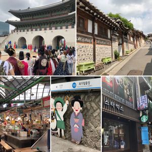 半日ツアーに参加しました。景福宮から始まり広藏市場まで6箇所も、駆け足でしたがガイドさんは手書きの資料もたくさん用意して下さりお話の内容も豊富で、どこも興味深く楽しく回れました。集合もバスの乗り降りもとてもスムーズでした。自分達で電車やタクシーを使ってもこれだけの箇所を回るのは大変です。何度かソウルに行った事がある人でも、このツアーはお勧めです。