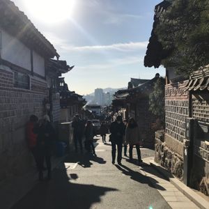 2月の寒い日に車で回れるのは本当にありがたいです。といっても私たちの参加した日は暖かく日本とあまり変わらない感じでした。私たち以外はカップルの1組だけで、和やかな雰囲気で回れました。ガイドのチョーさんは日本にも住んでいたとのことで、日本語が上手です。北村では「あの豪邸は〇〇財閥の会長のお宅で、事件が…」とまるで韓国ドラマさながらの裏話をしてくれます。景福宮では、建物・歴史含めて丁寧に説明してくれます。また写真撮影スポットでは、チョーさんが記念写真を撮ってくれます。ガイドブックではわかりませんでしたが、北村、梨花壁が村は、急な坂道なので車で本当によかったです。ガイドのチョーさんはyoutubeで「ヨンヨンTV」というのをやているそうなのでソウルへ行く前にチェックするといいかもしれません。
