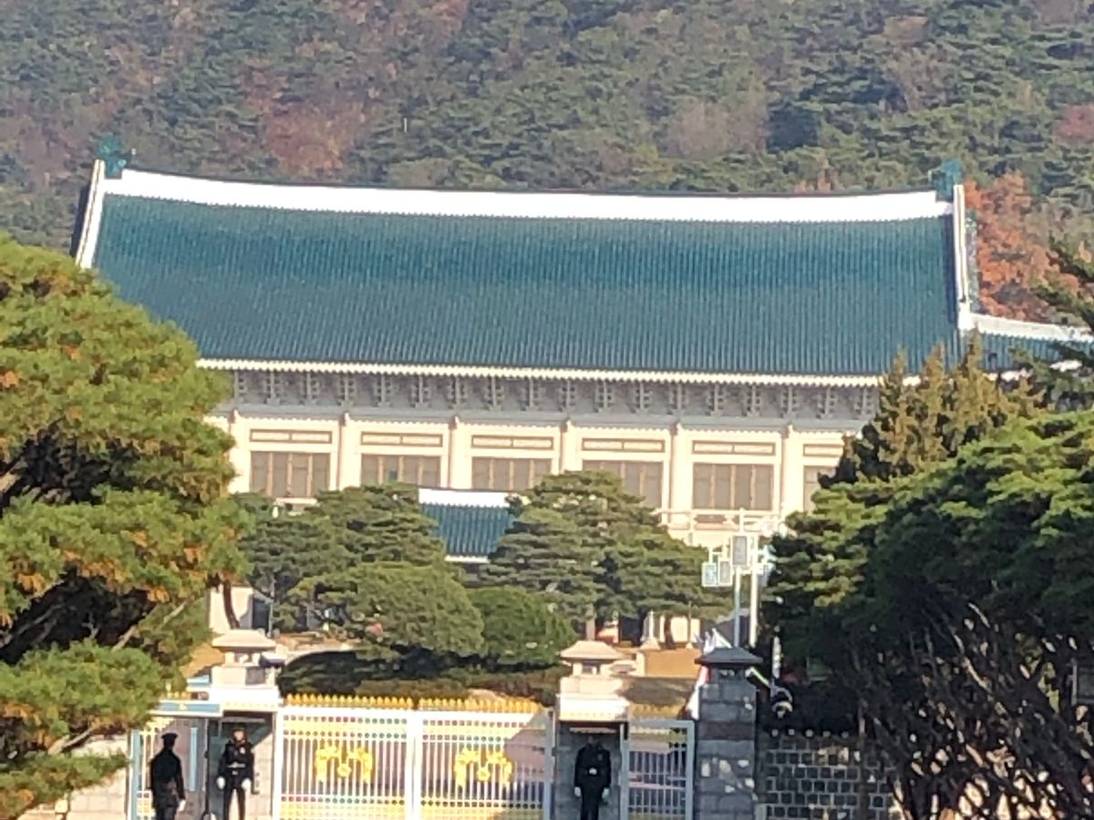 その前にある、よくドラマで出てくる大統領官邸は、山を背景にした青い瓦屋根がとても美しく感動いたしました。素敵なソウルの一日を幸せに過ごしました。